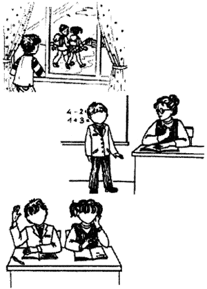 Проведение исследования. На рис. 6 и 7 изображены дети в различных ситуациях, связанных со школой и учением.
