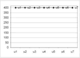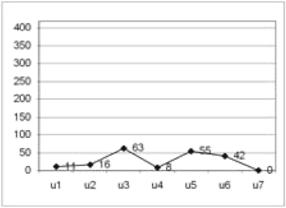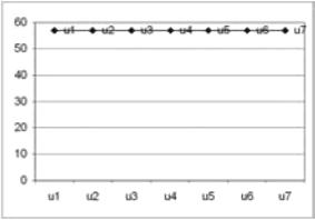 Другим способом представления результатов по шкале «УЛО» является графический, позволяющий моделировать конкретные результаты с помощью профиля «УЛО» конкретного испытуемого. При этом для построения профиля могут быть использованы как сырые баллы (максимум — 420), так и частоты ответов (максимум — 60). Точки на графике характеризуют разные степени «Установки на честность» («U13») — 1 (полностью согласен), 2 (согласен), 3 (частично согласен) и «Установки на ложь» («U57»): 5 (частично согласен), 6 (согласен), 7 (полностью согласен). Точка «4» соответствует ответу «Трудно сказать» и включается в расчет суммарного коэффициента «ULO», что и объясняет неравенство суммарного коэффициента «ULO» сумме коэффициентов «U13» и «U57», о чем говорилось выше.