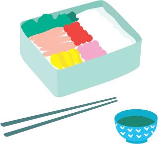 В обед многие японцы достают бэнто – пищевой контейнер с отделениями. Там лежат овощи, мясо или рыба и, конечно же, рис. Привлекательный внешний вид блюд – часть процесса получения удовольствия от еды. Для облегчения усвоения пищи ее запивают зеленым чаем или напитком из обжаренного ячменя.