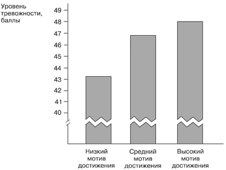 Рис. 14.5. Личностная тревожность у лиц с разным уровнем мотива достижения.