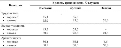 Таблица 14.6. Профессиональные качества и уровень тревожности.