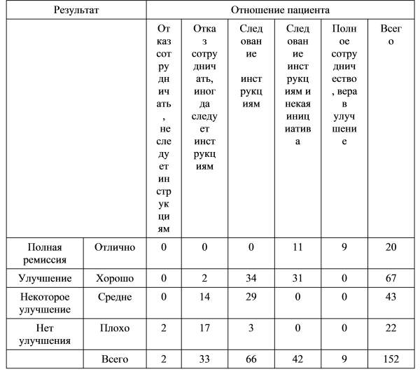 Таблица 1. Метод Симонтонов: динамика 152 пациентов с диагнозом конечной стадии рака
