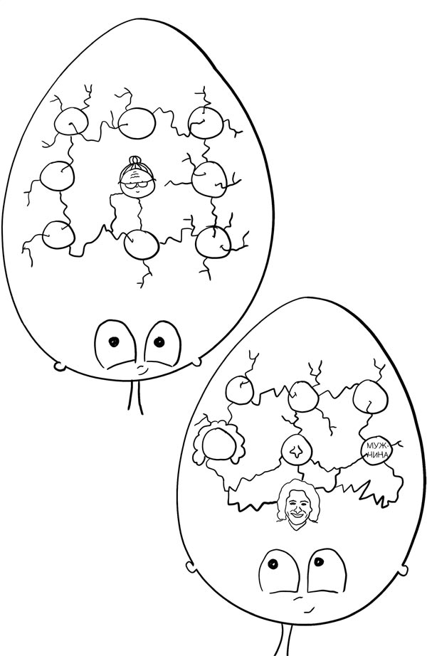 Вот еще один пример. У нас, немцев, наверняка есть нейрон Томаса Готтшалька. У меня, во всяком случае, он точно есть, как у фаната передачи «Спорим, что?..» (Wetten, dass?..) и бывшего кандидата на участие в ней. Другие клетки реагируют на определенные цвета или формы. Через глаза образ поступает в мозг и там декодируется. Некоторые нейроны разряжаются при виде локонов. Другие – при виде светлых волос. Третьи разряжаются на зрелище пестрой одежды. Наверное, есть нейроны, реагирующие на большие носы. Сигналы от таких нейронов передаются на другие нервные клетки, и где-то расположена одна клетка, куда сходятся все эти сигналы, отвечающие за «локоны», «светлые волосы», «мужчину» и «большой нос». Этого вполне достаточно для того, чтобы преодолеть порог возбуждения и разрядить эту клетку, при возбуждении которой нам является образ: «Томас Готтшальк!» Если в этом ансамбле отсутствует аспект «мужчина», то, возможно, стимуляция окажется недостаточной. В противном случае клетка разрядилась бы в ответ на образ Барбары Шёнебергер или вашего любимого кокер-спаниеля.
