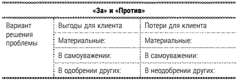 Важнейшая задача консультанта – приучить клиента самостоятельно принимать решения и отвечать за последствия своих поступков. Предложите клиенту хорошо подумать, прежде чем совершить рискованный поступок: скоропалительно оформить брак или развод, уволиться или пойти на сомнительную сделку. Попросите клиента вспомнить способы, которые помогали при решении подобных проблем в прошлом. Пусть он пофантазирует вслух: что будет через год, если он выберет тот или иной вариант решения проблемы?