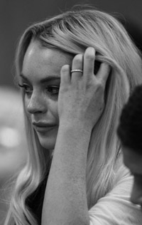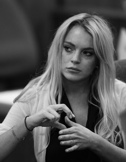 Фото 7.25. Линдси Лохан, играющая пальцами рук, в суде Беверли-Хиллз. Фото: Pool/London Entertainment/Splash News/All Over Press