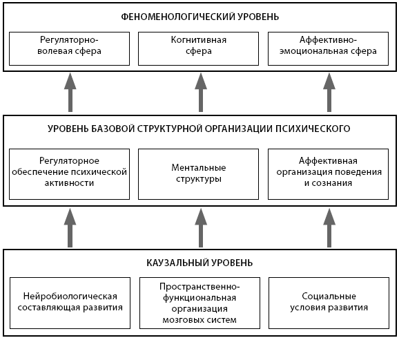 Мы выделили три уровня анализа психического развития, представляющие вертикальную структуру: