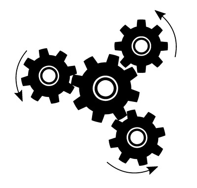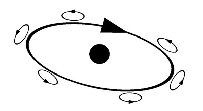 Рис. 7.5. а) Маленькие вихри с «правильной» ориентацией заставляют либидо в большом контуре циркулировать в «неправильную» сторону. б) Аналогия с шестеренками. Центральная шестеренка и шестеренки вокруг нее вращаются в противоположных направлениях.