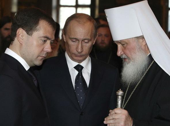 Д. Медведев, В. Путин и патриарх Кирилл