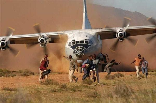 Рис. 8.8. Паническая толпа. Аварийная посадка АН-12, а перед ним в панике бегущие африканцы (кадр из фильма "Lord Of War" режиссера Николоса Гаге)