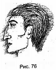 3. Нос с горбинкой в верхней части у переносицы (рис. 76) характеризует агрессивного, скандального, порой деспотичного человека:, склонного к подавлению другой личности и другого мнения.