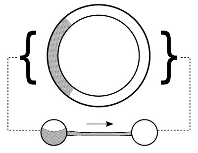 Рис. 6.11. Начальное состояние вихря. Либидо еще сосредоточено в одной части контура. Эту часть по правилу композиции можно заменить представлением, у которого есть запас либидо. Другую (пустую) часть контура – представлением без энергии. Эти два представления образуют устойчивую пару – влечение.