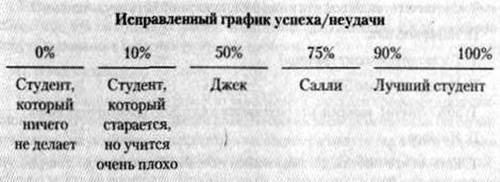 Т: А теперь давайте поместим этого воображаемого студента, действительно полного неудачника в учебе, на 0%. Тогда где мы расположим Джека? И вас саму?