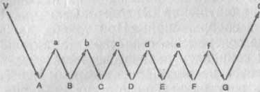 Всего яснее это можно видеть на рис. 3. Пусть А, В, С, D, Е, F, G изображают установившуюся в силу привычки цепь мышечных сокращений, пусть а, b, с, d, e, f, G означают ощущения, вызываемые этими последовательными сокращениями. Эти ощущения обыкновенно локализуются в движущихся частях, но иногда они возникают при посредстве движений уха или глаза.