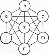 Весь описанный нами процесс может быть грубо изображен в виде диаграммы (рис. 13). Назовем забытый объект мысли Z, первые факты, имеющие к нему отношение, — а, b и с, а детали, имеющие решающее значение для припоминания этого объекта, — l, m и n. Тогда каждый кружок на диаграмме будет изображать нервный процесс, главным образом соответствующий той идее, которая обозначена стоящей на кружке буквой. Сначала активность Z выразится некоторым простым внутренним напряжением, но, когда возбуждения а, b и с постепенно повлекут за собой l, т и n и когда все эти процессы так или иначе станут действовать на Z, их совместное давление на Z пробудит в последнем сильнейшую активность и цель будет достигнута.