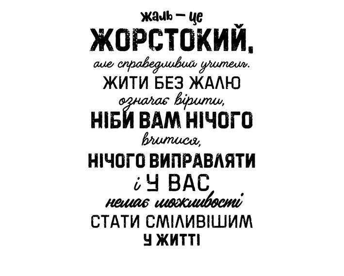 — Вона не боялася людей, які чогось потребують, тому що не боялася власної потреби в інших, — пояснила мама. — Вона з легкістю обдаровувала своєю добротою, тому що покладалася на доброту інших.