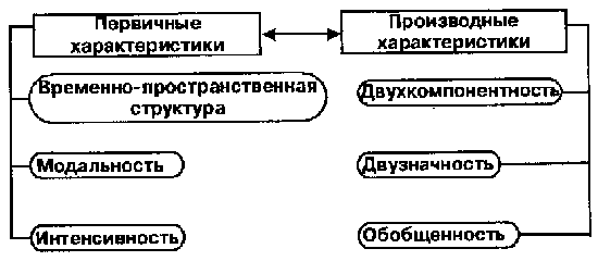 "Общий множитель" всех перечней эмпирических характеристик познавательных процессов действительно имеется — это пространственно-временная структура, модальность, интенсивность. Все остальные характеристики каждого перечня по отношению к этой исходной подгруппе являются производными и содержат разные модификации и сочетания пространственновременных, модальных и интенсивностных параметров.
