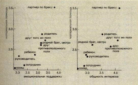 Зачем людям нужны друзья? Как можно увидеть из рис. 2.1, это происходит по трем причинам: 1) материальная помощь и информация, хотя друзья обеспечивают ею в меньшей степени, чем семья или сослуживцы; 2) социальная поддержка в форме совета, сочувствия, доверительного общения или просто общность взглядов на мир (для некоторых замужних женщин друзья здесь более важны, чем мужья); 3) общность интересов, совместные занятия, общие игры (часто именно это в первую очередь сближает друзей и дает повод для встреч). Социальные навыки и умение находить и сохранить дружеские взаимоотношения включают способность к поддерживающему стилю в общении, оказание взаимных услуг и выражение дружеской привязанности. Наше исследование правил дружбы привлекло внимание к еще одной важной области - умению общаться с третьими лицами. Друзья приходят не поодиночке, каждый несет с собой связи с целой группой своих друзей и знакомых, и очень важно научиться правильно обращаться с этой системой дружеских контактов (Argyle and Henderson, 1984). Дружба может распасться, если люди ревниво относятся к другим взаимоотношениям, не умеют хранить тайны или не могут постоять за друга в его отсутствие.