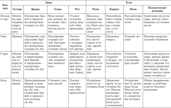 Таблица 6. Сочетание экспрессивных признаков некоторых психических процессов.