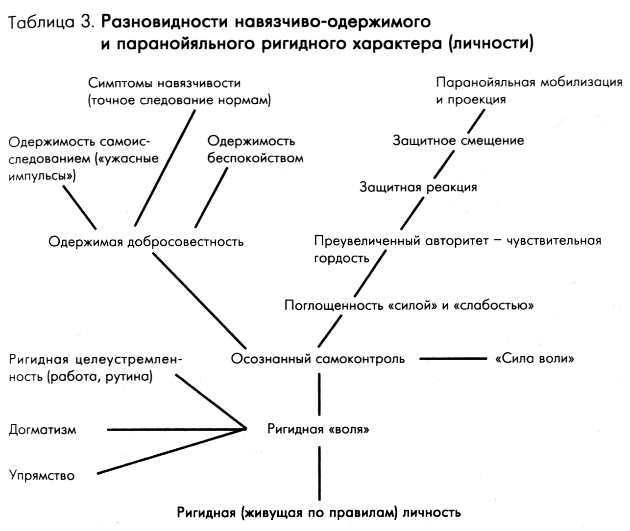 Крайние случаи паранойяльной ригидности помогают прояснить основную связь ригидности и пассивной реактивности, ибо можно видеть, что в чем-то они совпадают. Как паранойяльное защитное замещение постепенно становится ригидным, так все более немедленными и ситуативными постепенно становятся суждения, а подлинная рефлексия снижается. Напряженная и проницательная сосредоточенность, присущая паранойяльным личностям, часто создает впечатление эффективного, волевого внимания. Но неизбежное «открытие» специального подтверждающего ключа позволяет ясно увидеть ригидность и крайнюю ограниченность поиска, реагирующего лишь на те объекты и элементы, которые будут отвечать ожиданиям, и на те объекты и элементы, которые соответствуют уже более или менее устоявшейся мысли или идее («идее фикс»).