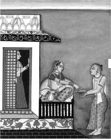 Вот девушки, которых не хотят в жены равные им: девушка из простой семьи, хотя наделенная достоинствами и ведущая себя должным образом, или девушка из родовитой, но бедной семьи, или сирота, живущая в доме у родственников, но обладающая всеми достоинствами и соблюдающая законы рода и касты. Такая девушка сама заботится о замужестве и стремится к нему; она прилагает усилия, чтобы завлечь достойного, сильного и красивого мужчину или человека, который женится на ней по слабости характера и даже без позволения родителей. Пусть она как можно чаще встречается с таким мужчиной или как бы невзначай попадается ему на глаза, чтобы внушить любовь к себе. Ее мать или старшая родственница также должна поощрять такие встречи, призывая на помощь ее подруг и молочную сестру. Девушка же пусть старается уединиться с предметом своих домогательств в тихом месте, дарит ему цветы, бетель, благовония.