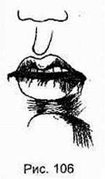 Открытость большого рта (рис. 106) является отражением силы и отваги, но также и ненависти своего хозяина, а также указывает на его вспыльчивость, жажду приключений, потребность в перемене обстановки и переменчивое настроение.