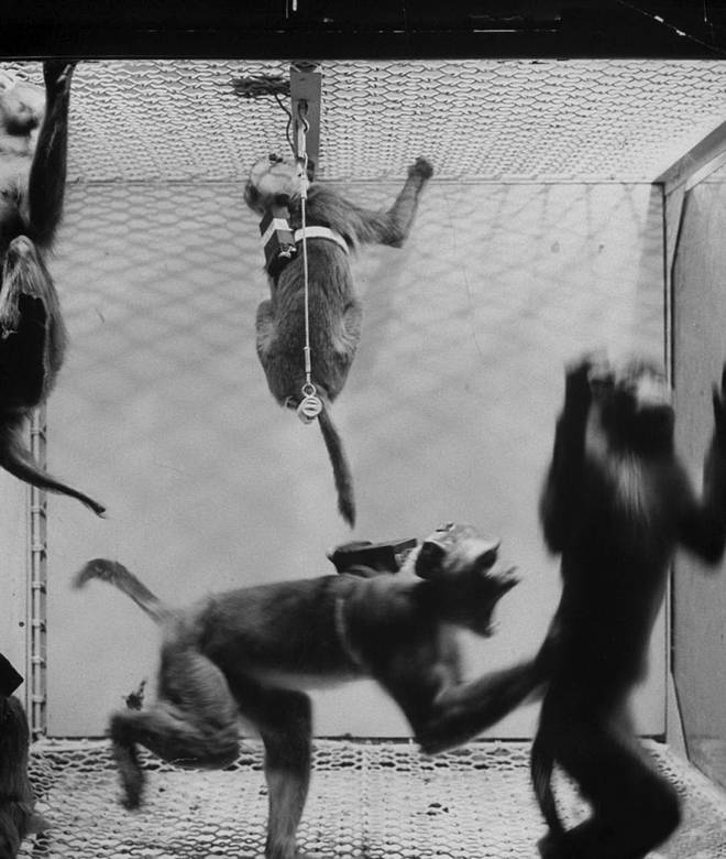 Самка, жившая в той же клетке, вскоре обнаружила взаимосвязь между поведением самца и педалью, и надавливала на нее всякий раз, как только самец начинал угрожать ей.
