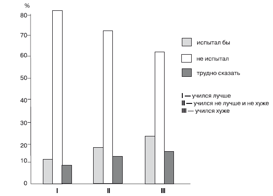 Реже всего успешные ученики завидуют успеху тех, кто до этого учился лучше, чем респондент. Частота завидывания наибольшая, если добиваются успеха учащиеся, учившиеся хуже респондента. Очевидно, чем неожиданнее успех аутсайдера, тем больше это задевает самолюбие успешного респондента, тем чаще возникает по отношению к нему зависть.