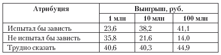 Таблица 3.1. Приписывание чувства зависти респондентами соседу, выигравшему в лотерее, % случаев