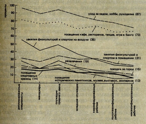 Рис. 4.3. Влияние социальной принадлежности на выбор форм досуга. (Birch, 1979)