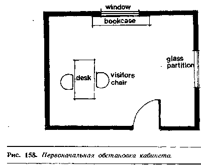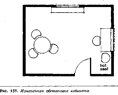 Все, что вам требуется для повышения вашего статуса и авторитета, это немного поразмыслить над тем, какую невербальную информацию передает обстановка вашего кабинета или дома. К сожалению, большинство кабинетов руководителей обставлены так, как показано на рис. 158, и редко кто задумывается над теми негативными невербальными сигналами, которые невольно передаются посетителям.