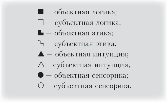 С учетом конструкции типа ИМ и введенных обозначений перейдем непосредственно к соционической типологии.