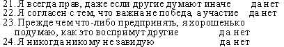 Теперь подсчитайте количество положительных ответов в следующих позициях: