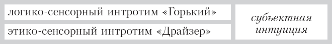 Субъектная интуиция («Горький», «Драйзер»). «Я принципиален и последователен, ничто не может заставить меня изменить самому себе» – так предъявляют себя внешнему миру люди этих типов. Ради сохранения этого впечатления о себе они демонстрируют корректность, сдержанность, замкнутость, постоянно выдерживая определенную дистанцию по отношению к людям и миру (скрытность). Они не боятся быть непризнанными, но боятся быть узнанными (неоткровенны). Их не любят, но, как правило, им завидуют. Хотя содержание принципиальности и последовательности их целей может незаметно для них самих сильно изменяться, вплоть до противоположного, поскольку их самооценка не связана с доминирующими потребностями. Главная внутренняя проблема таких типов ИМ – наличие субъективных идеалов, служащих для формирования положительной самооценки изнутри. Чаще всего эти идеалы не имеют никакого отношения к реальной действительности, что порождает трудно скрываемое пренебрежение к сложившейся ситуации. Особенно эффективны в деятельности, требующей четкого следования поставленной цели, в достижении цели, как правило, не очень церемонятся с выбором средств. Поэтому наиболее адекватно чувствуют себя в профессиях, где цель задается внешним, авторитетным источником (государственная структура, авторитетный лидер, возложенная миссия). Легко передвигаясь в социальном пространстве, ищут позицию: «Задание получено – доверьтесь и не мешайте».