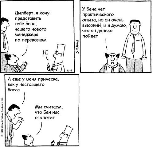 Карикатура Скотта Адамса недалека от истины. Исследования показывают, что высокие люди зарабатывают больше, чем их невысокие коллеги, и чаще занимают руководящие посты (Chaiken, 1986; Stogbill 1948)