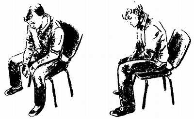 • предплечья обоприте на бедра, корпус, опирающийся на руки, слегка наклонен вперед, голова свободно опущена.