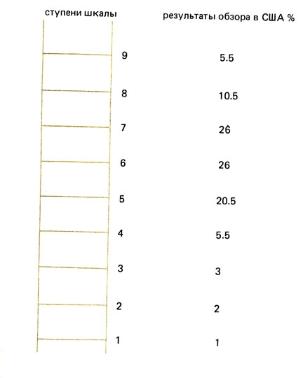 На рис. 1.1 показан так называемый "метод лестницы". В нем делается попытка определить диапазон суждений за счет постановки таких вопросов, отвечая на которые респонденты выдвигают содержательные определения обоих полюсов оценочной шкалы - то есть в верху и в низу "лестницы". Интересно, что эта "лестница" не показывает заметных расхождений результатов исследований, проводимых в странах, для которых характерны значительные различия в уровнях материального благосостояния, жилищных условиях и здравоохранении. Однако если кто-нибудь говорит о том, что он очень счастлив в своей глинобитной хижине на сваях, значит, мы должны допустить, что это именно так.