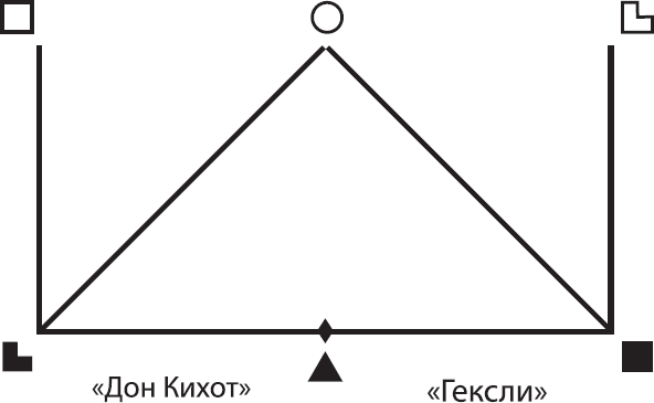 Следующий вид отношений – родственные. Такие симметричные отношения у типа ИМ «Дон Кихот» с типом ИМ «Гексли». Рассмотрим их по методу качественных структур (рис. 15).