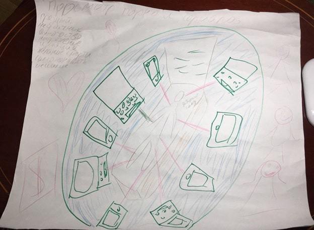 На этом рисунке я нахожусь в центре. Вокруг меня есть образ друзей, денег, дома, девушки, любви и радости. Все это — мои желания, то, чего я на самом деле хочу.