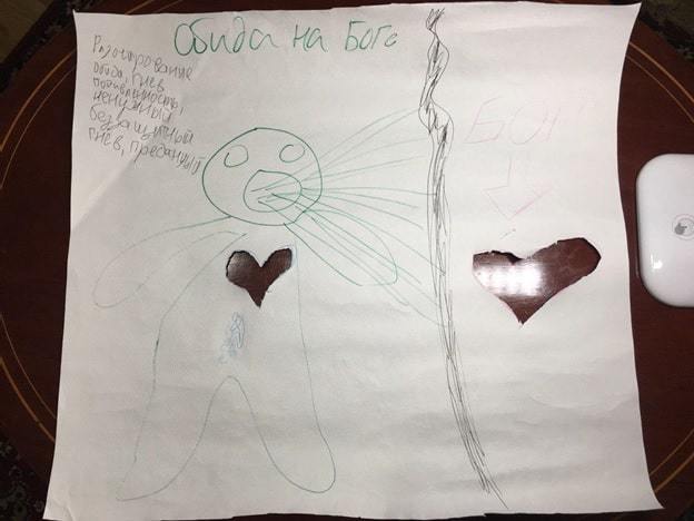 На этом рисунке у меня два ножа в руках и этими ножами я причинял сам себе боль.