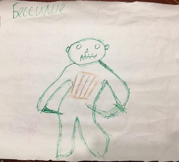 Я смотрю сейчас на рисунок и с удивлением обнаружил, что тот, кричащий на Бага панцирь снаружи, очень похож на образ моего папы. Внутри меня прятался плачущий беззащитный мальчик, который пережил много боли, разочарования, травм в течении своей жизни, а снаружи психика выстроила кричащую броню, чтобы защищать этого мальчика внутри.