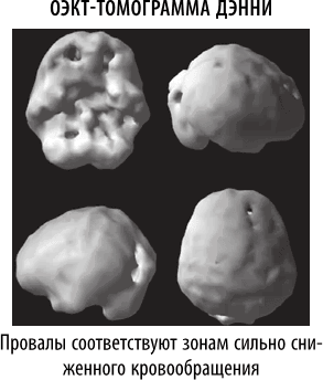 ОЭКТ-томограмма Дэнни показала тяжелое повреждение ПФК в лобной доле его мозга (сосредоточенность, планирование, здравомыслие, контроль поведения), в левой височной доле (память, обучение, негативные мысли) и в затылочных долях в задней части мозга (обработка зрительной информации). Хорошая новость заключалась в том, что его мозг можно было восстановить при правильном лечении.