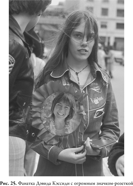 В 1970-х влюбленных в Кэссиди девочек было не сосчитать – отчасти такая популярность связана с его миловидной, ничем не угрожающей внешностью. Мужчины называли его женственным мальчиком и насмехались над его взглядом олененка Бэмби, над склонностью носить майки поверх разноцветных полупрозрачных рубашек. Девушкам же он казался «своим», и представить близкую связь с ним было не сложно. Многие женщины признавали, что фантазировали о таких «особенных отношениях». Журналистка Лиз Джоунс вспоминала, что считала Кэссиди «идеальным парнем». Она помещала его на обложку журнала Trendy, который сама создавала и иллюстрировала. Это поклонение достигло максимальных высот, когда Лиз попала на концерт Кэссиди на стадионе Уайт-Сити – певец выступал в «комбинезоне, украшенном горным хрусталем», и ей было трудно поверить, что в тот вечер они дышали одним воздухом[671]. Писательница Эмма Фрейд признавалась: когда ей было тринадцать, Дэвид Кэссиди был ее «главной и бесспорной мечтой № 1»[672]. Нина Мысков, в начале 1970-х издававшая журнал Jackie, вспоминала, что портреты Кэссиди были в то время самым популярным украшением девичьих комнат[673]. Он был милым, приятно улыбался и ничем не угрожал. Среди множества связанных с Кэссиди сувениров, выпускавшихся в те дни, был, например, мягкий медвежонок с красным шелковым бантом и надписью «Думаю, я тебя люблю» на жилетике.