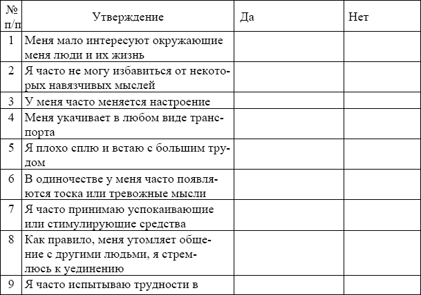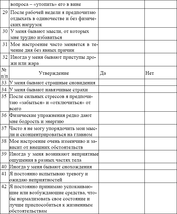 Инструкция, предлагаемый опросник выявляет особенности вашего самочувствия в данный период времени. Вам необходимо однозначно ответить на 42 вопроса: либо «да», либо «нет».