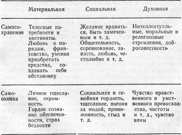 Заботы о себе и самосохранение. Под это понятие подходит значительный класс наших основных инстинктивных побуждений. Сюда относится телесное, социальное и духовное самосохранение.