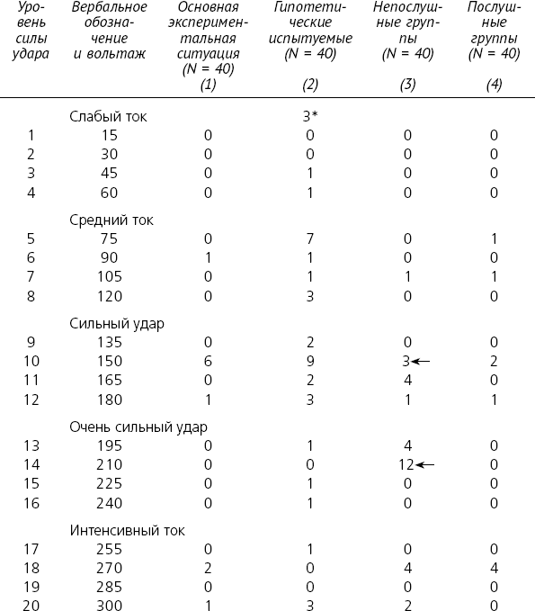 * Эти трое испытуемых сказали, что отказались бы наносить даже первый, самый слабый удар.