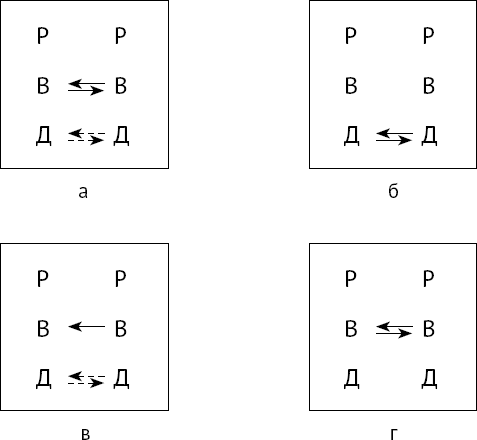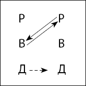 Если сослуживец и сам испытывает симпатию к этой женщине и порадовался, что сможет остаться с ней наедине, на трансактной схеме данного сюжета (рис. 14) следует поставить встречную пунктирную стрелку Д ? – Д. Если же нет, то – нет.