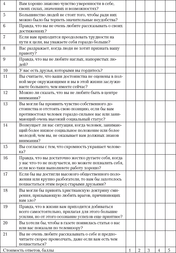 Тест «Гордыня»