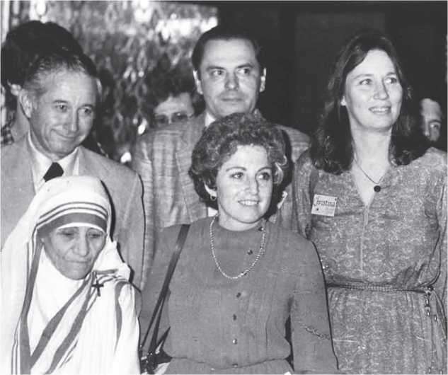 Кристина и Стен Гроф, Мерилин Гершензон и Джерри Ямполъский с Матерью Терезой на конференции МТА в Бомбее в феврале 1982 г.