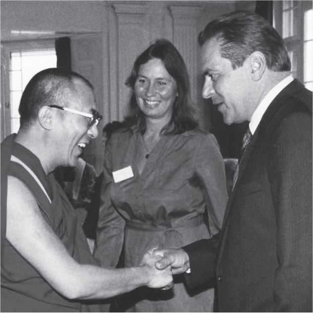Стен и Кристина Гроф приветствуют Его Святейшество Далай-ламу на конференции МТА в Давосе в 1983 г.