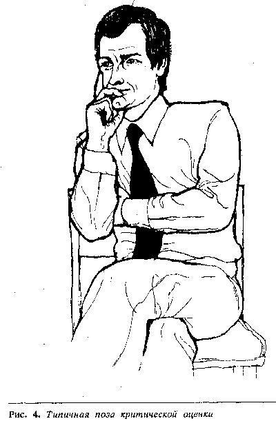 Если бы вы были собеседником человека, показанного на рис. 4, и попросили его выразить свое мнение относительно того, что вы только что сказали, на что он бы ответил, что с вами не согласен, то его невербальные сигналы были бы конгруэнтными, т. е. соответствовали бы его словесным высказываниям. Если же он скажет, что ему очень нравится все, что вы говорите, он будет лгать, потому что его слова и жесты будут не конгруэнтными. Исследования доказывают, что невербальные сигналы несут в 5 раз больше информации, чем вербальные, и в случае, если сигналы не — конгруэнтны, люди полагаются на невербальную информацию, предпочитая ее словесной.